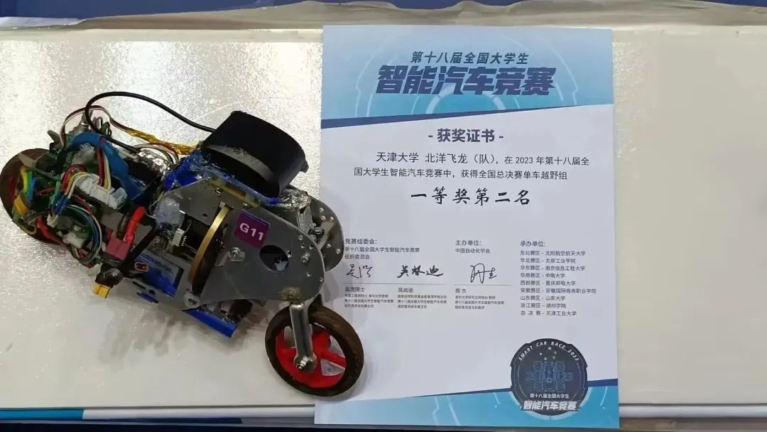 天津大学智能车队单车越野组参加第18届全国大学生智能汽车竞赛全国总决赛,以全国第二名获得国家级特等奖。单车越野组参赛队员有大一队员邓柠远,大二队员杨一林、徐耀华,指导教师为王建荣、徐天一、李祺。